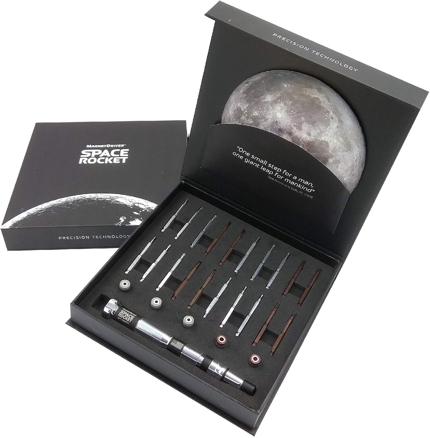 - COMMEMORATIVE – In recognition of the 50th anniversary of the Apollo 11 moon landing, the Space Rocket is a precision screwdriver kit modeled after the Saturn V rocket that brought humankind to the moon. In the spirit of that milestone of innovation, the Magnet Driver Space Rocket set provides you the capability to repair your personal appliances.